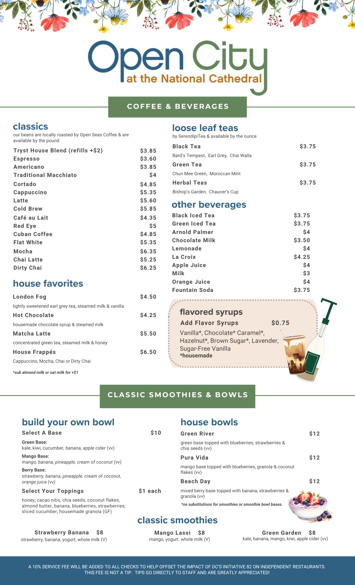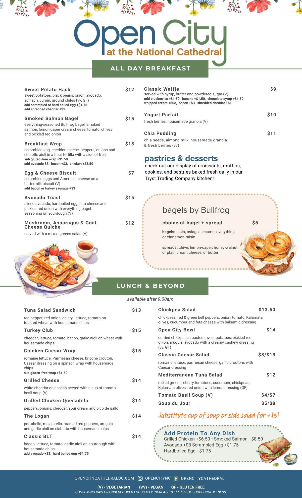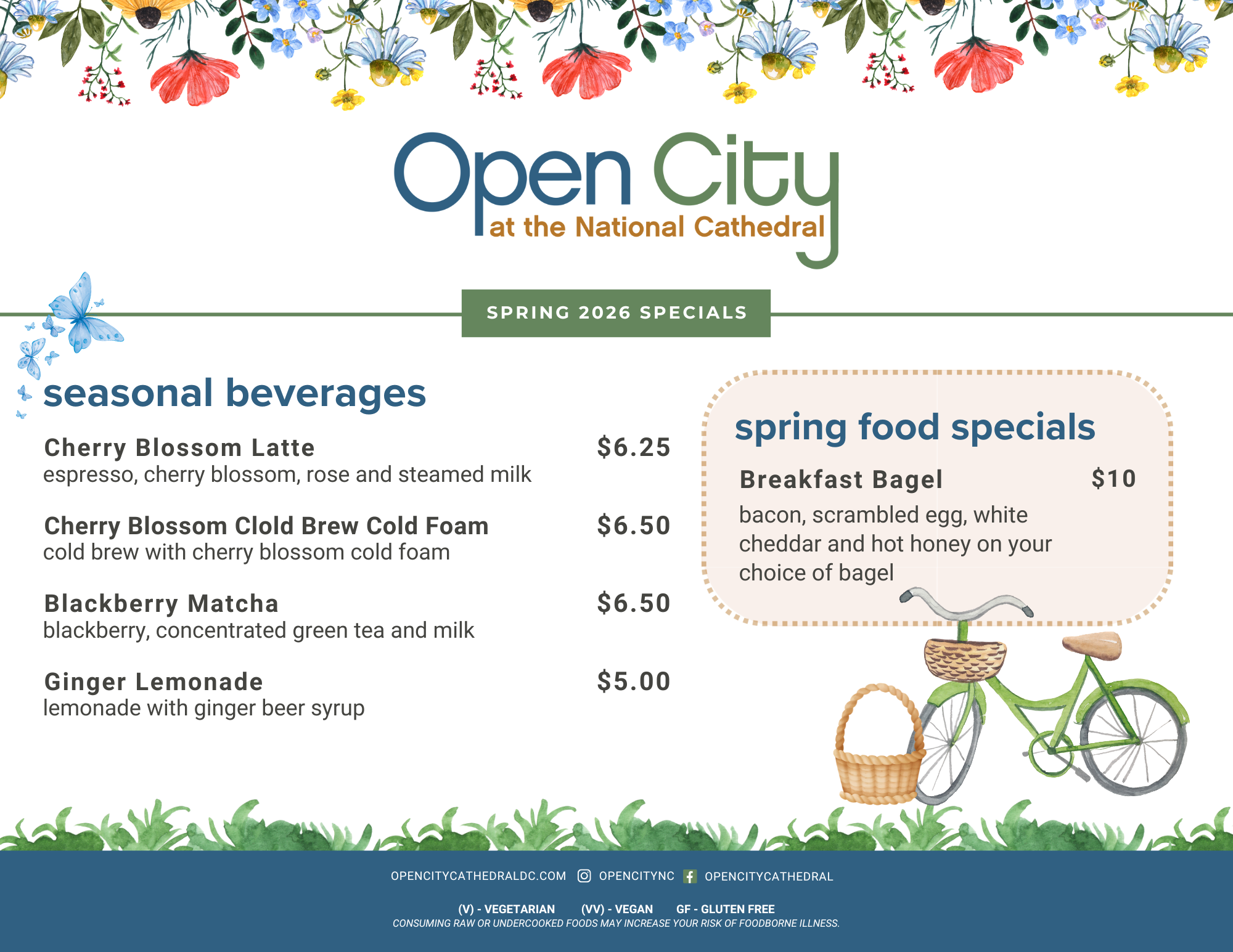 At Open City at the National Cathedral you can linger over a latte, have a quiet lunch, or enjoy a brunch date with friends under the backdrop of the National Cathedral. Families, students and tourists call us one the small gems of our nation’s capital.